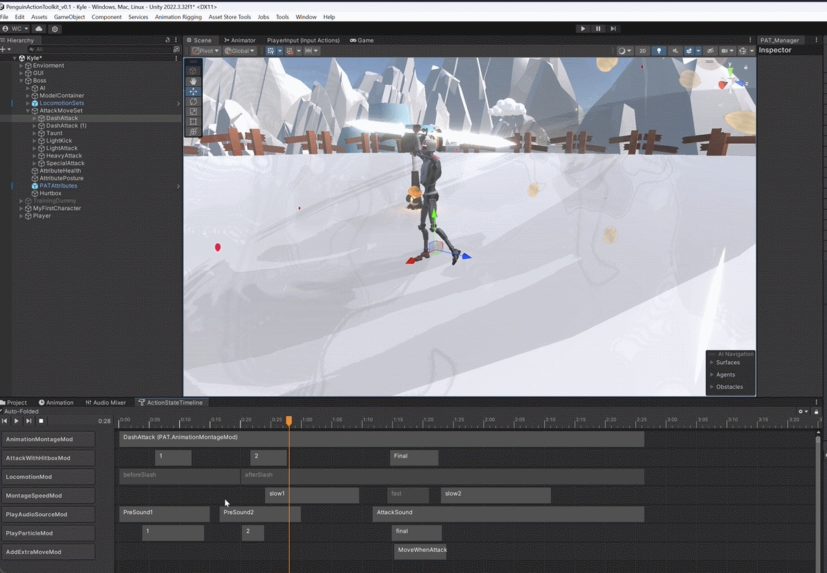 And as you can see, user can easily modify the timing attribute by drag and drop in the timeline as well. In short term, we kind of re-invented unity’s timeline system in PAT. One thing I did bad is that I didn’t make the timeline behavior controlled by state modifier themselves, instead I hard coded them in the fron-end code cause I did this feature over one week end. Next time, I might try to see if I can build the combat system with Unity’s official timeline and playable feature.