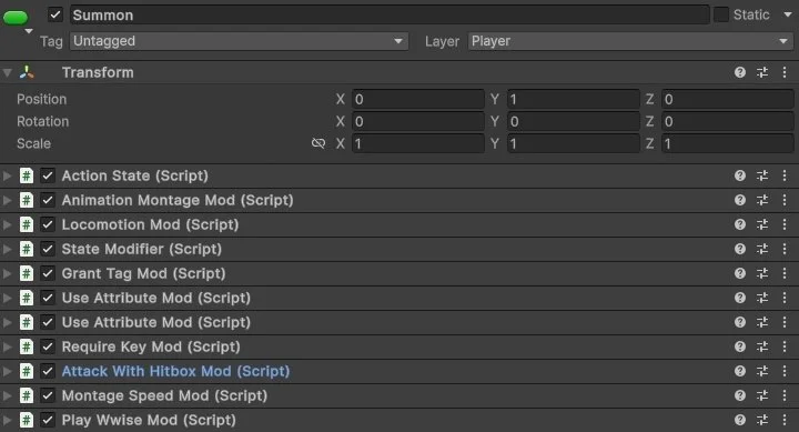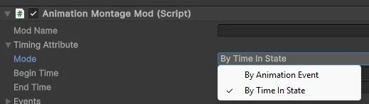 Having too many mono-behaviors on inspector is not very maintainable. More importantly, you can not visualize the action in your mind reading them. Thus we used custom editor to visualize state modifiers into grids on a timeline. The start and end point of those grid is 1:1 represented in the graph, even if you pick to link to animation event, it will grab the animation clip info and scale it with your montage speed modification to display it at the right position.